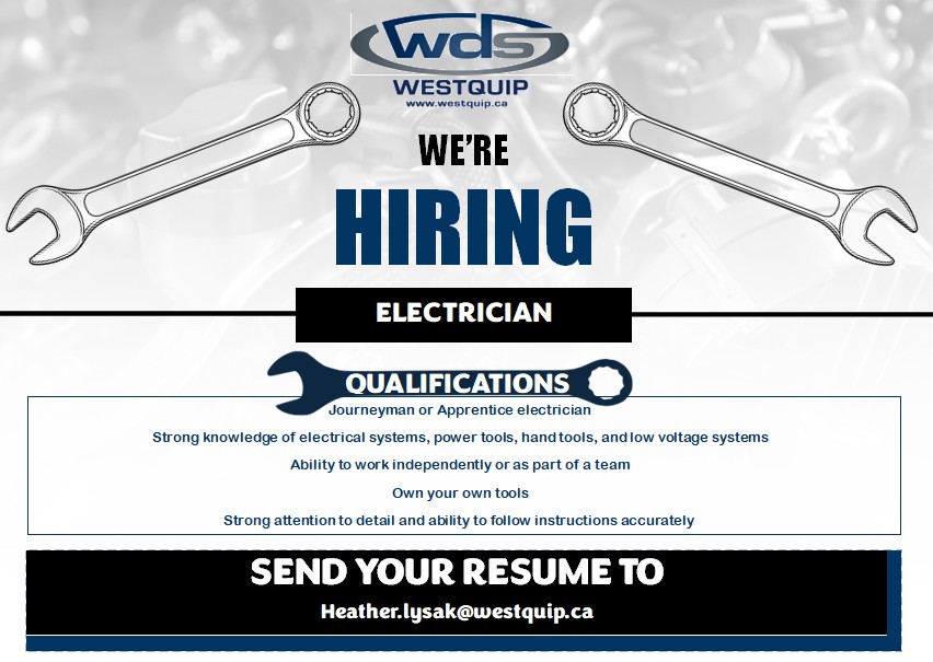 Westquip Diesel Sales LTD is hiring a Electrician for our Acheson, AB location.